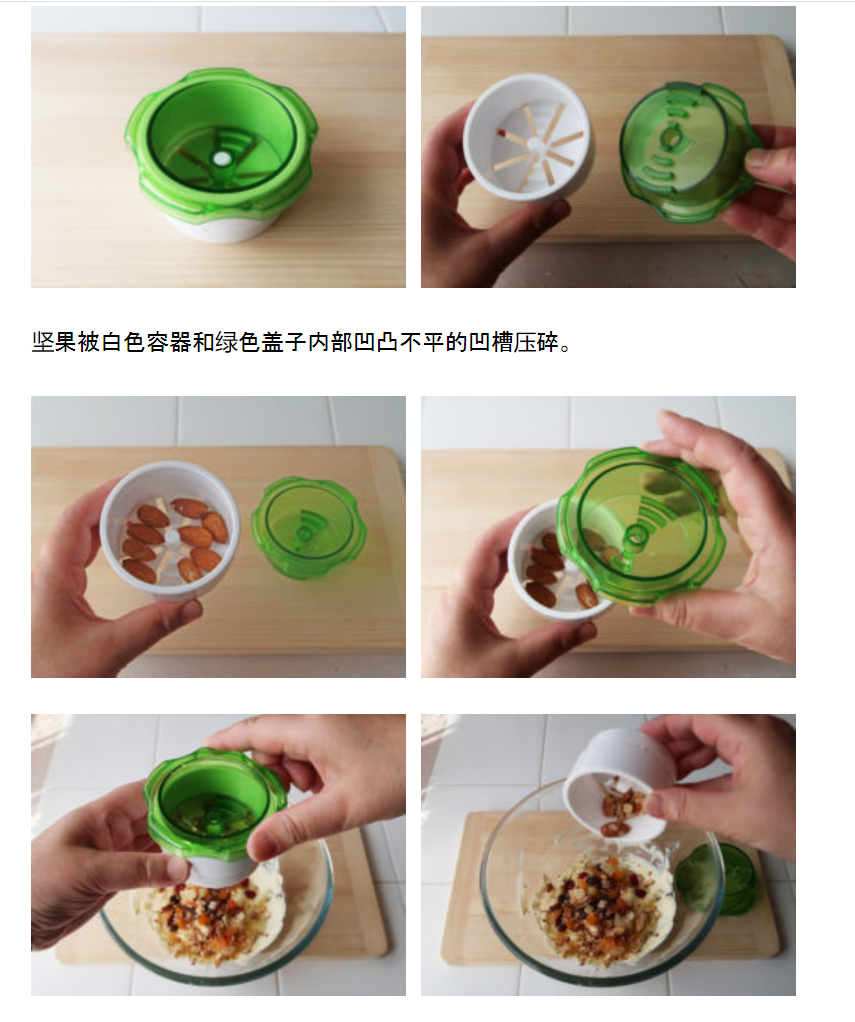 And popular nuts such as almonds, walnuts and pistachios are delicious, nutritious and popular because they just need to add a topping to make the dish fashionable. However, when you try to cut them into small pieces with a knife, they fly away and fall apart and are difficult to cut. In this case, it is convenient to have a "nut crusher" that can easily break nuts.