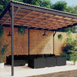Relax and enjoy your leisure time with this trendy garden lounge set! It is meant to meet a variety of your different needs. Sturdy frame: This patio seat features a sturdy powder coating steel frame and plastic chrome feet, which is highly durable.Premium material: The garden sofa is designed with water-resistant PE rattan, making it easy to clean, hard-wearing and suitable for daily outdoor use.Modular design: The modular design also makes it possible to place the set in any arrangement or combine them with other modular segments to meet your needs.Comfortable cushions and pillows: The thickly padded and removable cushions and pillows provide optimal comfort for your outdoor sitting. Note:In order to extend the life of your outdoor furniture, we recommend you to clean it regularly and do not leave it outdoors without protection unnecessarily.Clean: Use a mild soap solution.Storing: If possible, store in a cool, dry place indoors. If the product is stored outdoors, protect it with a waterproof cover. Wipe and dry the excess water or snow from flat surfaces after a rain or snowfall. Allow sufficient air circulation to avoid moisture-related damage.