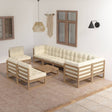 This garden lounge set is an excellent choice for relaxing and enjoying the weather, taking a nap, or chatting with your family or friends. The garden lounge set is made of solid pinewood, making it sturdy and stable. The cushions add extra comfort. You can combine it with other modular segments to create your own personal garden lounge set configurations! Note: In order to extend the life of your outdoor furniture, we recommend you to clean it regularly and do not leave it outdoors without protection unnecessarily.Clean: Use a mild soap solutionStoring: If possible, store in a cool, dry place indoors. If the product is stored outdoors, protect it with a waterproof cover. Wipe and dry the excess water or snow from flat surfaces after a rain or snowfall. Allow sufficient air circulation to avoid moisture-related damage.