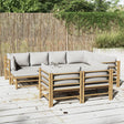 Enjoy a cup of coffee or tea with pleasant weather in your outdoor space with this elegant bamboo garden lounge set! Durable material: Bamboo is known for its flexibility and hardness. Bamboo furniture is a good option when you want strong outdoor furniture made from natural materials.Comfortable seat experience: The backrest and armrest add extra seating comfort for the garden sofa set. Also, the soft seat and back cushions provide comfort for your sitting time.Practical table: The sturdy table is perfect for placing meals, drinks, and other decorative items.Modular design: The lounge set is flexible and easy to move around, so you can combine it with other modular segments in the webshop to create your own personal outdoor lounge set configurations! Note:To make sure your outdoor furniture stays beautiful, we recommend protecting it with a waterproof cover.Good to know:To make assembly as easy as possible, each product is delivered with a manual.