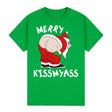 100% Cotton Christmas T-shirt Adult Unisex Tee Tops Funny Santa Party Custume, Merry Kissmyass (Green), XL