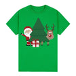 100% Cotton Christmas T-shirt Adult Unisex Tee Tops Funny Santa Party Custume, Santa with Tree (Green), XL