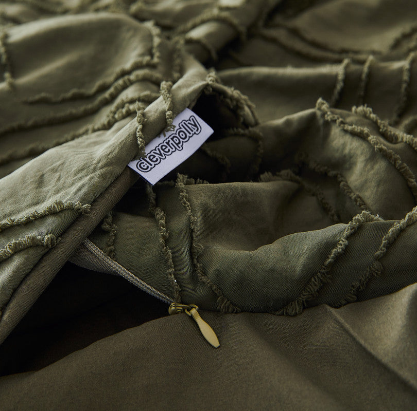 100% Premium Tufted Microfibre Quilt Cover Set - Ultra-Soft, Durable Embroidery Bedding Comforter Set - Machine Washable & Zipper Closure - Khaki Green - Double