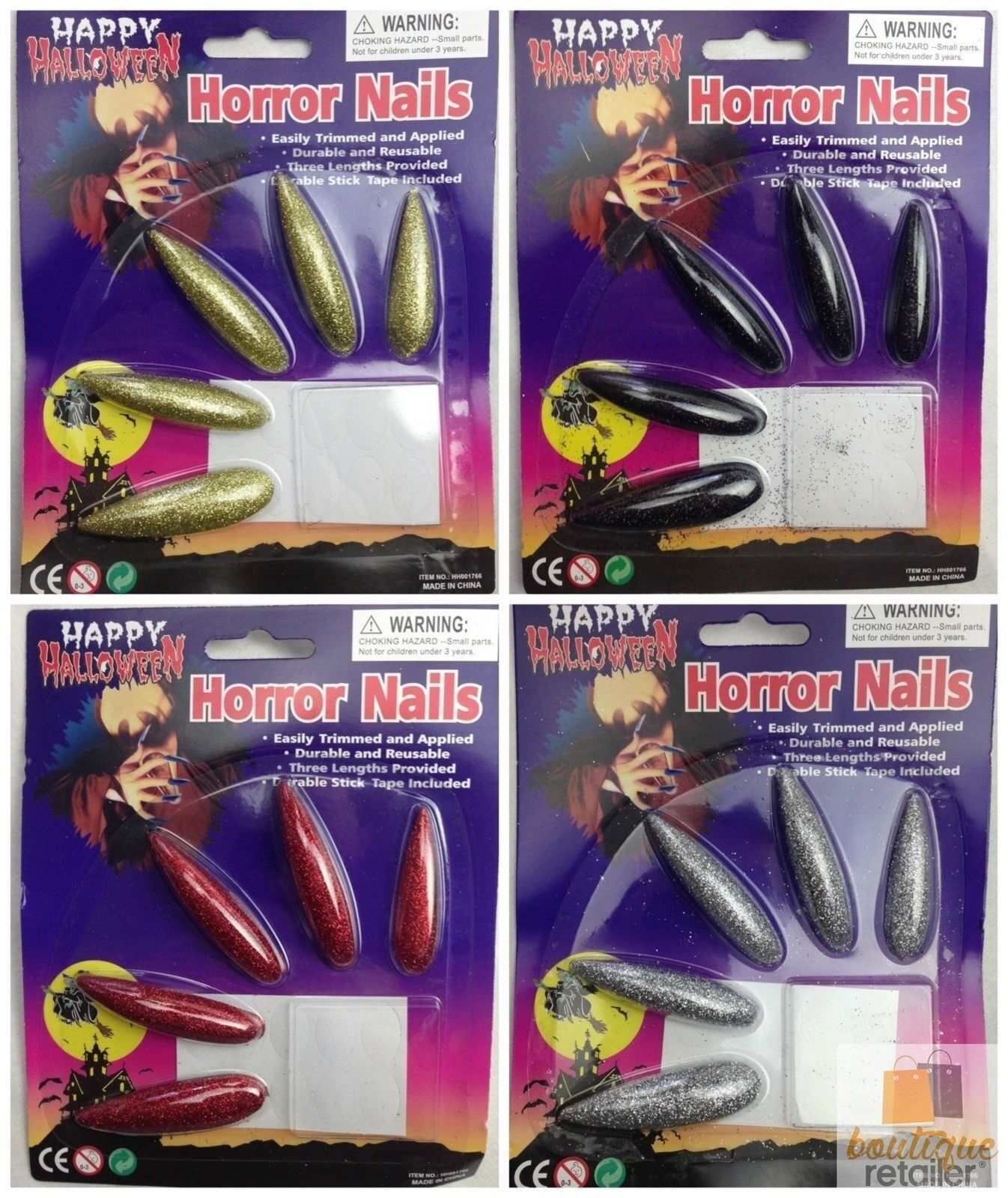 10x Long GLITTER HORROR NAILS Halloween Party Costume Accessory Vampire Witch New