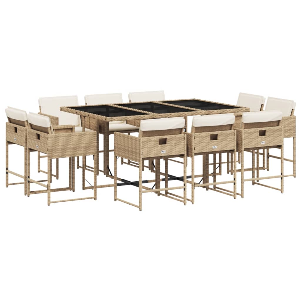 This garden dining set is a great choice for al fresco dining or just relaxing in the garden, backyard, or patio. Durable material: PE rattan, also known as poly rattan, is a strong, low-maintenance synthetic material that looks like natural rattan. It's lightweight, easy to clean, and commonly used for outdoor furniture due to its durability and weather-resistant properties.Compact storage: These chairs have a flap backrest that can be folded down, making it easy to store them under the table. When folded, they neatly fit under the table, forming a space-saving cube shape.Comfortable seat experience: The outdoor furniture, complete with thickly padded cushions, offers a comfortable seating experience.Removable and washable cover: These seat cushions feature removable covers for easy washing and maintenance. The chair cushion covers have a flap at the back for easy attachment to the chairs.Stable and easy-to-clean tabletop: The garden table has a tempered glass top that is sturdy, durable, and easy to clean with a damp cloth. Good to know:To make sure your outdoor furniture stays beautiful, we recommend protecting it with a waterproof cover.