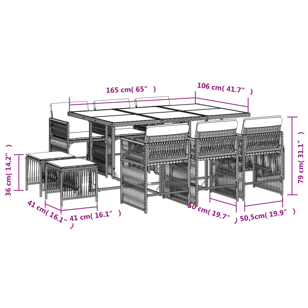 This garden dining set is a great choice for al fresco dining or just relaxing in the garden, backyard, or patio. Durable material: PE rattan, also known as poly rattan, is a strong, low-maintenance synthetic material that looks like natural rattan. It's lightweight, easy to clean, and commonly used for outdoor furniture due to its durability and weather-resistant properties.Compact storage: These chairs have a flap backrest that can be folded down, making it easy to store them under the table. When folded, they neatly fit under the table, forming a space-saving cube shape.Comfortable seat experience: This outdoor furniture, complete with thickly padded cushions, offers a comfortable seating experience.Removable and washable cover: These seat cushions feature removable covers for easy washing and maintenance. The cushion covers have a flap at the back for easy attachment to the backrests.Glass tabletop: The outdoor table's top is made from strong and durable tempered glass, making it easy to clean with a damp cloth and adding a touch of elegance to your outdoor space. Good to know:To make sure your outdoor furniture stays beautiful, we recommend protecting it with a waterproof cover.