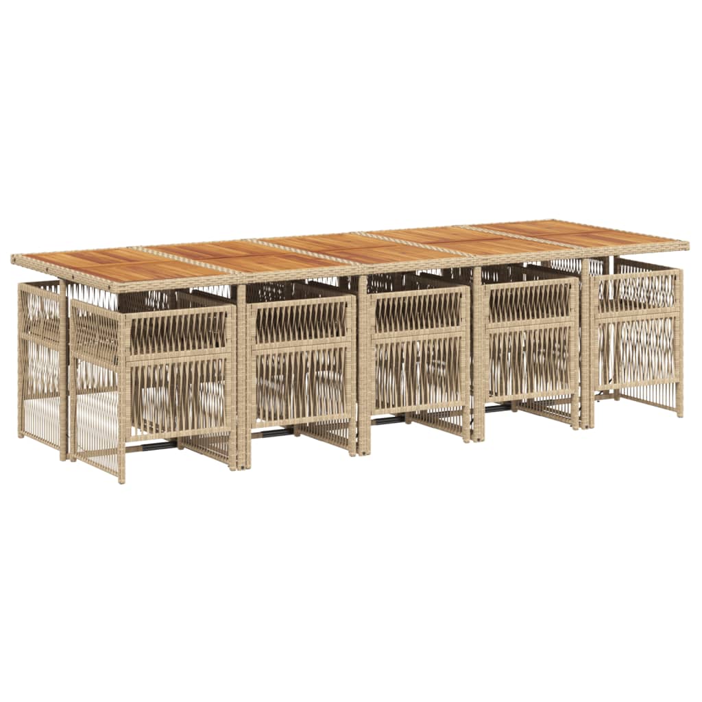 This garden dining set is a great choice for al fresco dining or just relaxing in the garden, backyard, or on the patio. Durable material: PE rattan, also known as poly rattan, is a strong, low-maintenance synthetic material that looks like natural rattan. It's lightweight, easy to clean, and commonly used for outdoor furniture due to its durability and weather-resistant properties.Compact storage: These chairs have a flap backrest that can be folded down, making it easy to store them under the table. When folded, they neatly fit under the table, forming a space-saving cube shape.Comfortable seat experience: This outdoor furniture, complete with thickly padded cushions, offers a comfortable seating experience.Removable and washable cover: These cushions feature removable covers for easy washing and maintenance. The cushion covers have a flap at the back for easy attachment to the backrests.Stable and easy-to-clean tabletop: This garden table has an acacia wood top that is sturdy, durable, and easy to clean with a damp cloth. Good to know: To make sure your outdoor furniture stays beautiful, we recommend protecting it with a waterproof cover.