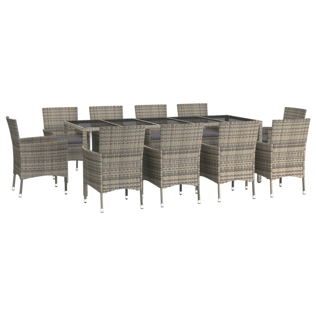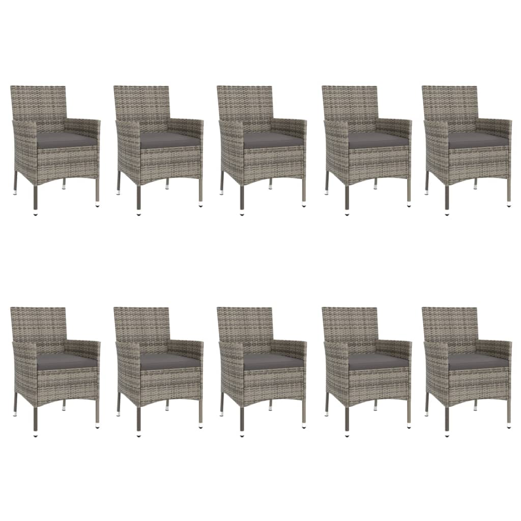 This stylish garden dining set provides you with a leisurely and comfortable time with your family and friends. Weather-resistant material: PE rattan, also known as poly rattan, is weather resistant and easy to clean. It remains beautiful on the outside for a long period of time. It offers great quality, convenience and an aesthetic look. Sturdy and stable frame: The powder-coated steel frame of the dining set ensures sturdiness and stability. Comfortable seat experience: The thickly padded cushions of the dining chairs provide the ultimate comfort for your sitting time.Practical table: The smooth tabletop of the dining table is made of tempered glass which is easy to clean with a damp cloth. Additionally, the sturdy tabletop is perfect for placing meals, drinks, and other decorative items.Flexible design: Thanks to the lightweight construction, these garden dining chairs are easy to move. Note:To make sure your outdoor furniture stays beautiful, we recommend protecting it with a waterproof cover.