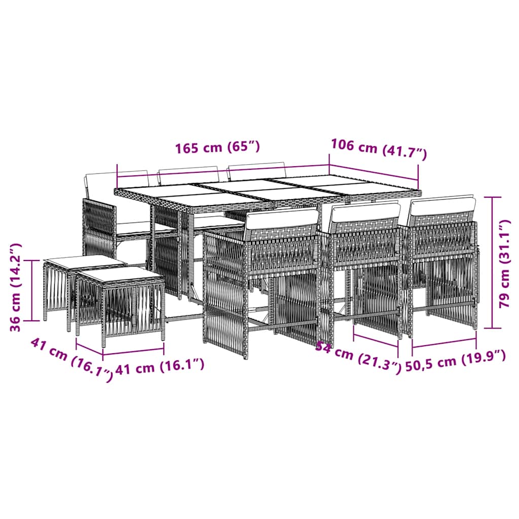 This garden dining set is a great choice for al fresco dining or just relaxing in the garden, backyard, or patio. Durable material: PE rattan, also known as poly rattan, is a strong, low-maintenance synthetic material that looks like natural rattan. It's lightweight, easy to clean, and commonly used for outdoor furniture due to its durability and weather-resistant properties.Compact storage: These chairs have a flap backrest that can be folded down, making it easy to store them under the table. When folded, they neatly fit under the table, forming a space-saving cube shape.Comfortable seat experience: This outdoor furniture, complete with thickly padded cushions, offers a comfortable seating experience.Removable and washable cover: These seat cushions feature removable covers for easy washing and maintenance. The cushion covers have a flap at the back for easy attachment to the backrests.Glass tabletop: The outdoor table's top is made from strong and durable tempered glass, making it easy to clean with a damp cloth and adding a touch of elegance to your outdoor space. Good to know:To make sure your outdoor furniture stays beautiful, we recommend protecting it with a waterproof cover.