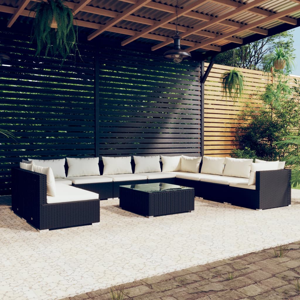 Relax and enjoy your leisure time with this trendy poly rattan garden lounge set! It is meant to be an excellent choice for you to take a breather from your hectic life. Sturdy and lightweight frame: This patio lounge set features a sturdy powder coating steel frame and plastic chrome feet, which is highly durable. Thanks to its lightweight construction, the sofa set is easy to move.Water-resistant material: Made of water-resistant material, the garden sofa set can withstand humidity and rainy weather. It can also be easily cleaned with a damp cloth when needed.Modular design: The modular design makes it possible to place the set in any arrangement or combine them with other modular segments to meet your needs.Comfortable cushions: The thickly padded and removable cushions provide optimal comfort for your outdoor sitting. Note:In order to extend the life of your outdoor furniture, we recommend you to clean it regularly and do not leave it outdoors without protection unnecessarily.Clean: Use a mild soap solution.Storing: If possible, store in a cool, dry place indoors. If the product is stored outdoors, protect it with a waterproof cover. Wipe and dry the excess water or snow from flat surfaces after a rain or snowfall. Allow sufficient air circulation to avoid moisture-related damage.