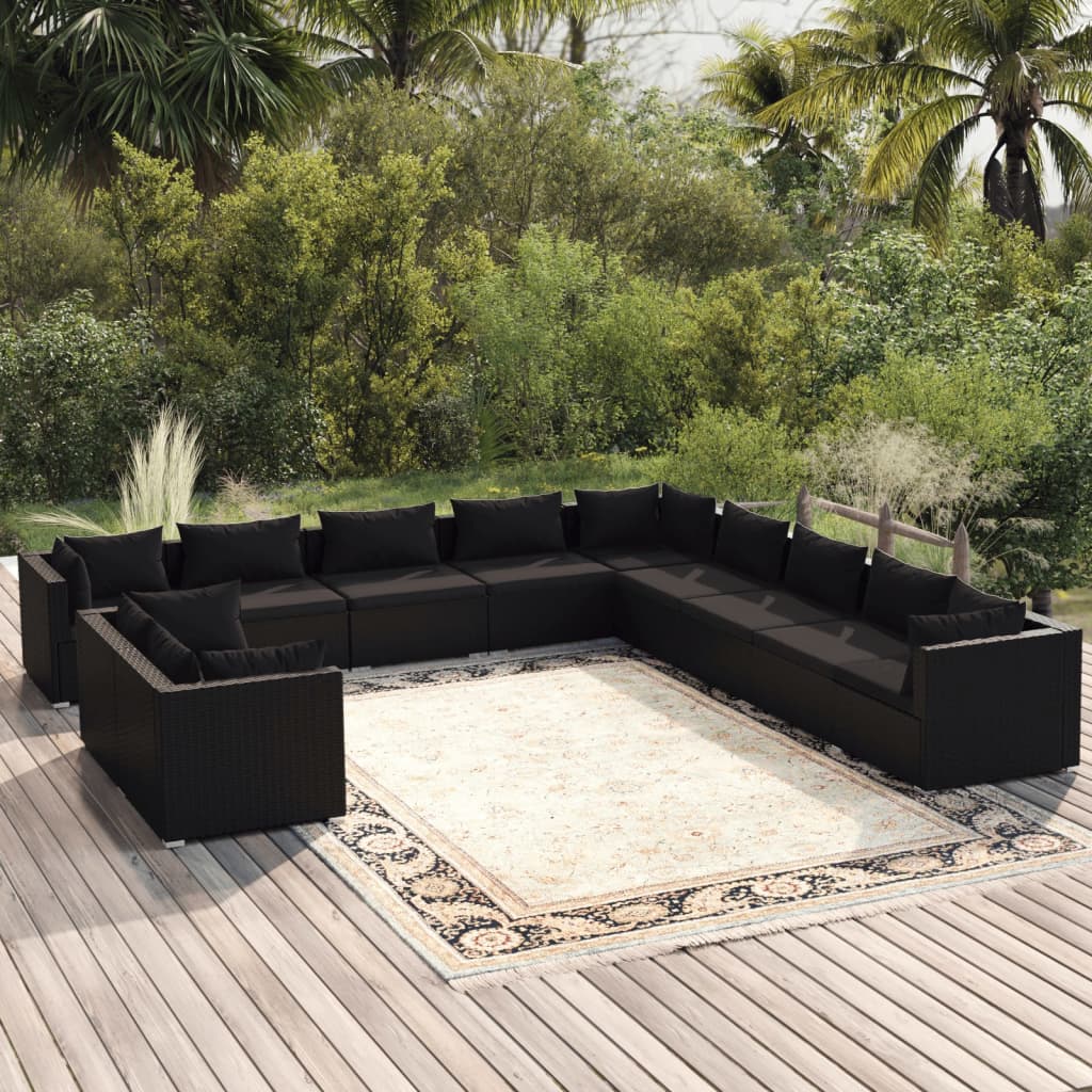 Relax and enjoy your leisure time with this trendy poly rattan garden lounge set! It is meant to be an excellent choice for you to take a breather from your hectic life. Sturdy and lightweight frame: This patio lounge set features a sturdy powder coating steel frame and plastic chrome feet, which is highly durable. Thanks to its lightweight construction, the sofa set is easy to move.Water-resistant material: Made of water-resistant material, the garden sofa set can withstand humidity and rainy weather. It can also be easily cleaned with a damp cloth when needed.Modular design: The modular design makes it possible to place the set in any arrangement or combine them with other modular segments to meet your needs.Comfortable cushions: The thickly padded and removable cushions provide optimal comfort for your outdoor sitting. Note:In order to extend the life of your outdoor furniture, we recommend you to clean it regularly and do not leave it outdoors without protection unnecessarily.Clean: Use a mild soap solution.Storing: If possible, store in a cool, dry place indoors. If the product is stored outdoors, protect it with a waterproof cover. Wipe and dry the excess water or snow from flat surfaces after a rain or snowfall. Allow sufficient air circulation to avoid moisture-related damage.