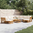 This wooden garden lounge set with cushions has an elegant design and is a great choice for relaxing and enjoying in the garden or patio. Solid acacia wood: Solid acacia wood is a beautiful natural material. Acacia wood is a tropical hardwood, which is dense, sturdy, and durable.Comfortable seat experience: The backrest and the thickly-padded cushions make the garden sofa set more comfortable to sit on.Slatted design: The slatted design of the wooden lounge set effectively prevents water from pooling, ensuring that the seat remains dry and free from potential rot.Modular design: This outdoor furniture set has a modular design, making it completely flexible and easy to move around, so you can create a customised outdoor furniture arrangement. Good to know:To make sure your outdoor furniture stays beautiful, we recommend protecting it with a waterproof cover.