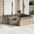 This garden sofa set is the perfect addition to your backyard, terrace, or patio, providing a comfortable and inviting space for chatting with family and friends or simply relaxing and enjoying the outdoors. Durable material: PE rattan, also known as poly rattan, is a strong, low-maintenance synthetic material that looks like natural rattan. It's lightweight, easy to clean, and commonly used for outdoor furniture due to its durability and weather-resistant properties.Storage function with water-resistant bag: The garden furniture features storage space under the seat, complete with a water-resistant bag for storing cushions, toys, and other items. The inner bag can be securely fastened to the outdoor furniture with hook-and-loop fasteners for added stability.Adjustable tabletop: The tabletop can be lifted to make the table higher, which transforms the outdoor table from a coffee table to a dining table. It's perfect for having guests over or eating meals outside.Removable and washable cover: These seat cushions feature removable covers for easy washing and maintenance.Modular design: This outdoor furniture set has a modular design, making it completely flexible and easy to move around, so you can create a customised outdoor furniture arrangement. Good to know:To make sure your outdoor furniture stays beautiful, we recommend protecting it with a waterproof cover.