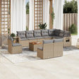 This garden sofa set is the perfect addition to your backyard, terrace, or patio, providing a comfortable and inviting space for chatting with family and friends or simply relaxing and enjoying the outdoors. Durable material: PE rattan, also known as poly rattan, is a strong, low-maintenance synthetic material that looks like natural rattan. It's lightweight, easy to clean, and commonly used for outdoor furniture due to its durability and weather-resistant properties.Storage function with water-resistant bag: Each garden seat features storage space under the seat, complete with a water-resistant bag for storing cushions, toys, and other items. The inner bags have a top cover and can be securely fastened to the seats with hook-and-loop fasteners for added stability.Stable and easy-to-clean tabletop: This garden table has an acacia wood top that is sturdy, durable, and easy to clean with a damp cloth.Convenient side table: This outdoor furniture features foldable side tables with a gas spring on the armrests, providing convenient spots to keep your essentials within easy reach.Modular design: This outdoor furniture set has a modular design, making it completely flexible and easy to move around, so you can create a customised outdoor furniture arrangement. Good to know:To make sure your outdoor furniture stays beautiful, we recommend protecting it with a waterproof cover.