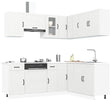 This 11-piece kitchen cabinet set, with its elegant design, optimises your kitchen space and provides ample storage space for your personal belongings! Stable and durable material: Engineered wood is a durable and stable material with a smooth surface that is resistant to moisture, warping, and splitting, making it a reliable choice for a variety of projects.Ample storage space: The kitchen cabinet set has many compartments, and offers sufficient space to store bowls, plates, pots, and other kitchen appliances.Adjustable feet: The bottom cabinets feature adjustable feet that can be adjusted in height to suit your kitchen layout.Easy to maintain: Thanks to its smooth surface, these kitchen cabinets are easy to clean with a damp cloth and require less maintenance. Warning:To prevent it from tipping over, this product must be used with the provided wall attachment device. Good to know:Screw(s) and plug(s) for inside the wall are not included. Seek and use screw(s) and plug(s) suitable for your walls. If you are uncertain, seek professional advice. Read and follow each step of the instruction carefully.The worktop, sink and faucet are not included in the delivery.