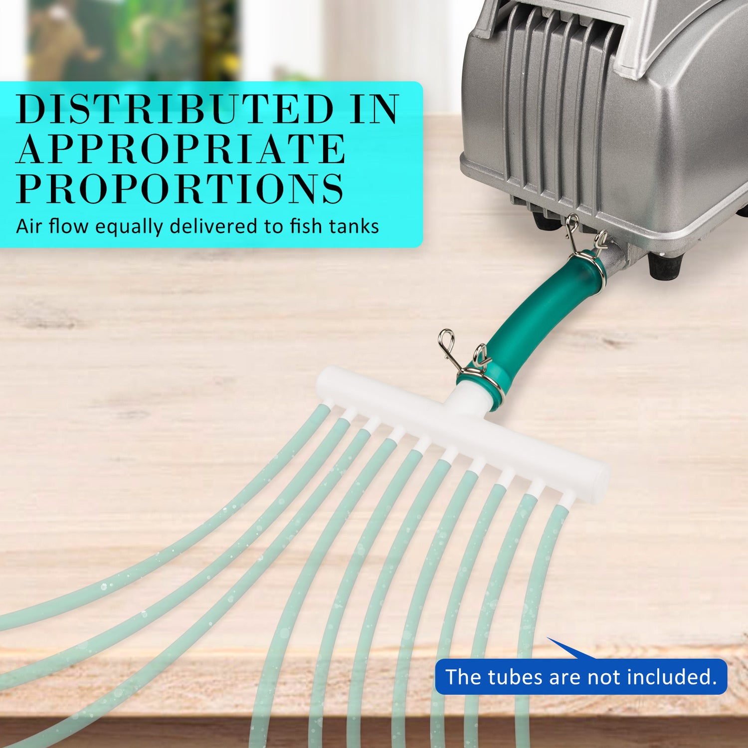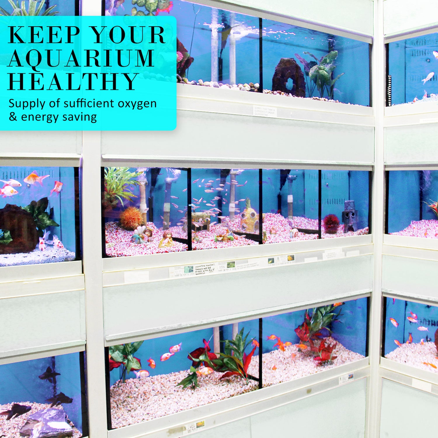 The 12 air outlets allow you to create a more even airflow and maximise the effectiveness in spreading oxygen. The compressor of this air pump is very quiet and the new design added with rubber feet keeps the vibration level to the minimum. The simple, yet efficient design also saves you precious space and also increases the service life.