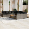 This garden sofa set is the perfect addition to your backyard, terrace, or patio, providing a comfortable and inviting space for chatting with family and friends or simply relaxing and enjoying the outdoors. Durable material: PE rattan, also known as poly rattan, is a strong, low-maintenance synthetic material that looks like natural rattan. It's lightweight, easy to clean, and commonly used for outdoor furniture due to its durability and weather-resistant properties.Convenient side table: This outdoor furniture features a foldable side table with a gas spring on the armrests, providing a convenient spot to keep your essentials within easy reach.Stable and easy-to-clean tabletop: This garden table has an acacia wood top that is sturdy, durable, and easy to clean with a damp cloth.Removable and washable cover: These seat cushions feature removable covers for easy washing and maintenance.Modular design: This outdoor furniture set has a modular design, making it completely flexible and easy to move around, so you can create a customised outdoor furniture arrangement. Good to know:To make sure your outdoor furniture stays beautiful, we recommend protecting it with a waterproof cover.