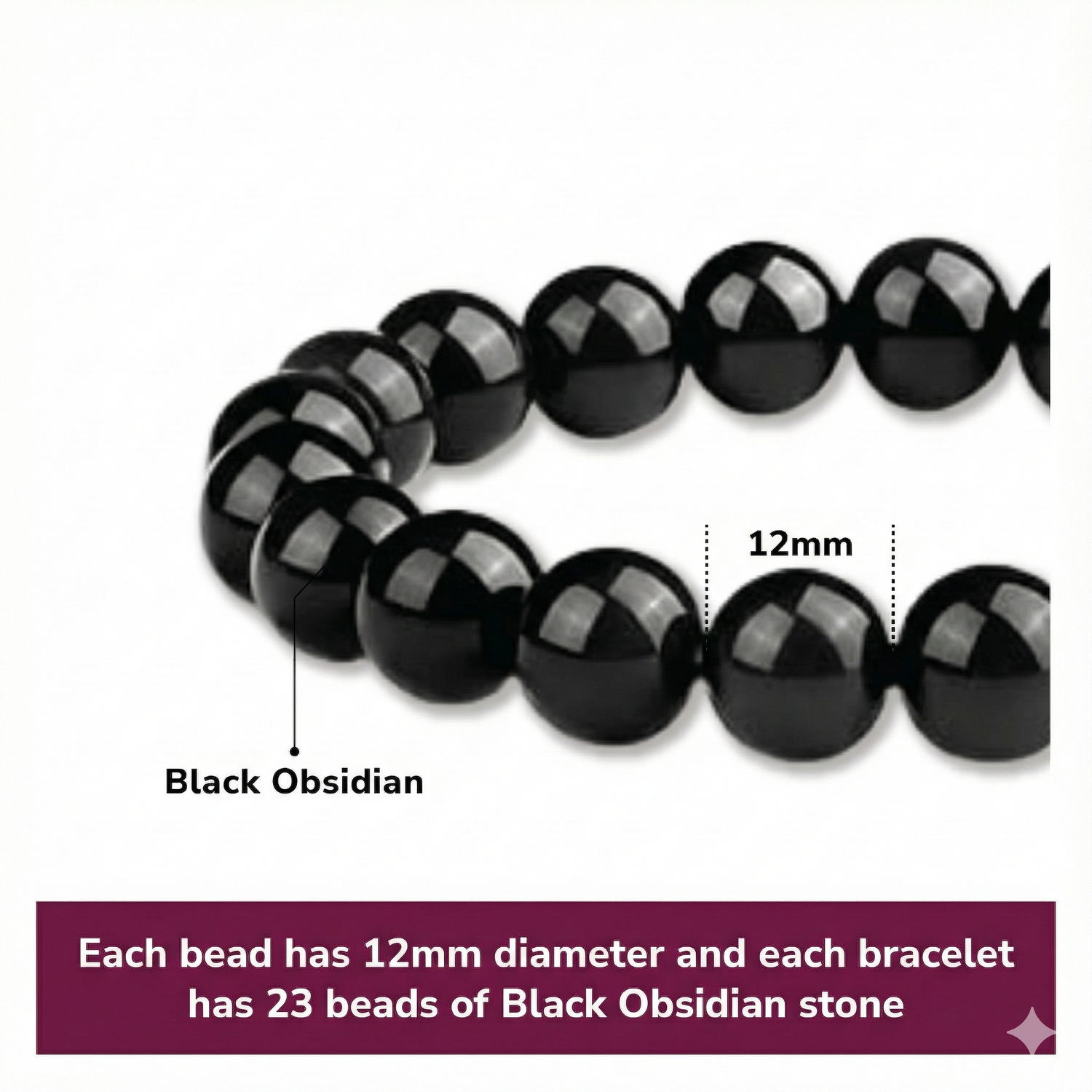 - 8mm Black Obsidian Beads: Each bracelet contains 23 precisely polished round beads made from natural black obsidian stone.