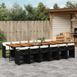 This garden dining set is a great choice for al fresco dining or just relaxing in the garden, backyard, or on the patio. Durable material: PE rattan, also known as poly rattan, is a strong, low-maintenance synthetic material that looks like natural rattan. It's lightweight, easy to clean, and commonly used for outdoor furniture due to its durability and weather-resistant properties.Compact storage: These chairs have a flap backrest that can be folded down, making it easy to store them under the table. When folded, they neatly fit under the table, forming a space-saving cube shape.Comfortable seat experience: This outdoor furniture, complete with thickly padded cushions, offers a comfortable seating experience.Removable and washable cover: These seat cushions feature removable covers for easy washing and maintenance. The chair cushion covers have a flap at the back for easy attachment to the chairs.Stable and easy-to-clean tabletop: This garden table has an acacia wood top that is sturdy, durable, and easy to clean with a damp cloth. Good to know: To make sure your outdoor furniture stays beautiful, we recommend protecting it with a waterproof cover.