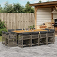 - Material: PE rattan, powder-coated steel, solid acacia wood with an oil finish