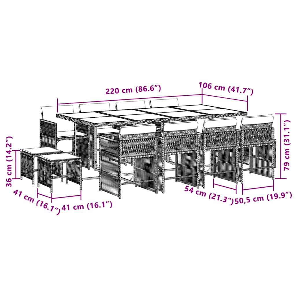 This garden dining set is a great choice for al fresco dining or just relaxing in the garden, backyard, or patio. Durable material: PE rattan, also known as poly rattan, is a strong, low-maintenance synthetic material that looks like natural rattan. It's lightweight, easy to clean, and commonly used for outdoor furniture due to its durability and weather-resistant properties.Compact storage: These chairs have a flap backrest that can be folded down, making it easy to store them under the table. When folded, they neatly fit under the table, forming a space-saving cube shape.Comfortable seat experience: This outdoor furniture, complete with thickly padded cushions, offers a comfortable seating experience.Removable and washable cover: These seat cushions feature removable covers for easy washing and maintenance. The cushion covers have a flap at the back for easy attachment to the backrests.Glass tabletop: The outdoor table's top is made from strong and durable tempered glass, making it easy to clean with a damp cloth and adding a touch of elegance to your outdoor space. Good to know:To make sure your outdoor furniture stays beautiful, we recommend protecting it with a waterproof cover.