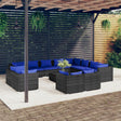This trendy 13-piece poly rattan garden lounge set is meant to be a great addition to your outdoor living space. It adds a touch of modern elegance to your patio, balcony or garden with its understated and stylish design. Premium material: The patio lounge set is designed with water-resistant PE rattan, making it hard-wearing and suitable for daily outdoor use.Sturdy frame: The powder-coated steel frames ensure sturdiness and stability.Comfortable seating: The thickly padded and soft cushions provide optimal comfort for your outdoor sitting.Flexible layout for any occasion: This modern garden furniture can be separated and arranged into a variety of ways to fit your outdoor space, allowing you to have a nice chat with families or friends in your lovely patio, garden, backyard, poolside, etc. Note:In order to extend the life of your outdoor furniture, we recommend you to clean it regularly and do not leave it outdoors without protection unnecessarily.Clean: Use a mild soap solution.Storing: If possible, store in a cool, dry place indoors. If the product is stored outdoors, protect it with a waterproof cover. Wipe and dry the excess water or snow from flat surfaces after a rain or snowfall. Allow sufficient air circulation to avoid moisture-related damage.
