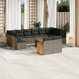 This garden sofa set is the perfect addition to your backyard, terrace, or patio, providing a comfortable and inviting space for chatting with family and friends or simply relaxing and enjoying the outdoors. Durable material: PE rattan, also known as poly rattan, is a strong, low-maintenance synthetic material that looks like natural rattan. It's lightweight, easy to clean, and commonly used for outdoor furniture due to its durability and weather-resistant properties.Storage function with water-resistant bag: The garden furniture features storage space under the seat, complete with a water-resistant bag for storing cushions, toys, and other items. The inner bag can be securely fastened to the outdoor furniture with hook-and-loop fasteners for added stability.Stable and easy-to-clean tabletop: This garden table has an acacia wood top that is sturdy, durable, and easy to clean with a damp cloth.Removable and washable cover: These seat cushions feature removable covers for easy washing and maintenance.Modular design: This outdoor furniture set has a modular design, making it completely flexible and easy to move around, so you can create a customised outdoor furniture arrangement. Good to know:To make sure your outdoor furniture stays beautiful, we recommend protecting it with a waterproof cover.