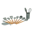 Update your kitchen tool set with this 13-piece set of silicone kitchen utensils by Randy & Travis Machinery. Done in subtle tones of natural wood accented with grey silicone, these utensils will look great in kitchens of any colour scheme. Or, hang them up by their built-in hooks to have them at the ready within easy reach. They're dishwasher safe, heat resistant, and super-easy to clean by hand, making them the perfect gift for weddings, housewarmings, birthdays, or holidays for the cook in your life.