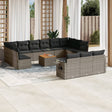 This garden sofa set is the perfect addition to your backyard, terrace, or patio, providing a comfortable and inviting space for chatting with family and friends or simply relaxing and enjoying the outdoors. Durable material: PE rattan, also known as poly rattan, is a strong, low-maintenance synthetic material that looks like natural rattan. It's lightweight, easy to clean, and commonly used for outdoor furniture due to its durability and weather-resistant properties.Convenient side table: This outdoor furniture features a foldable side table with a gas spring on the armrests, providing a convenient spot to keep your essentials within easy reach.Stable and easy-to-clean tabletop: This garden table has an acacia wood top that is sturdy, durable, and easy to clean with a damp cloth.Removable and washable cover: These seat cushions feature removable covers for easy washing and maintenance.Modular design: This outdoor furniture set has a modular design, making it completely flexible and easy to move around, so you can create a customised outdoor furniture arrangement. Good to know:To make sure your outdoor furniture stays beautiful, we recommend protecting it with a waterproof cover.