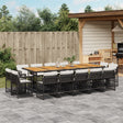 - Material: PE rattan, powder-coated steel, solid acacia wood with an oil finish