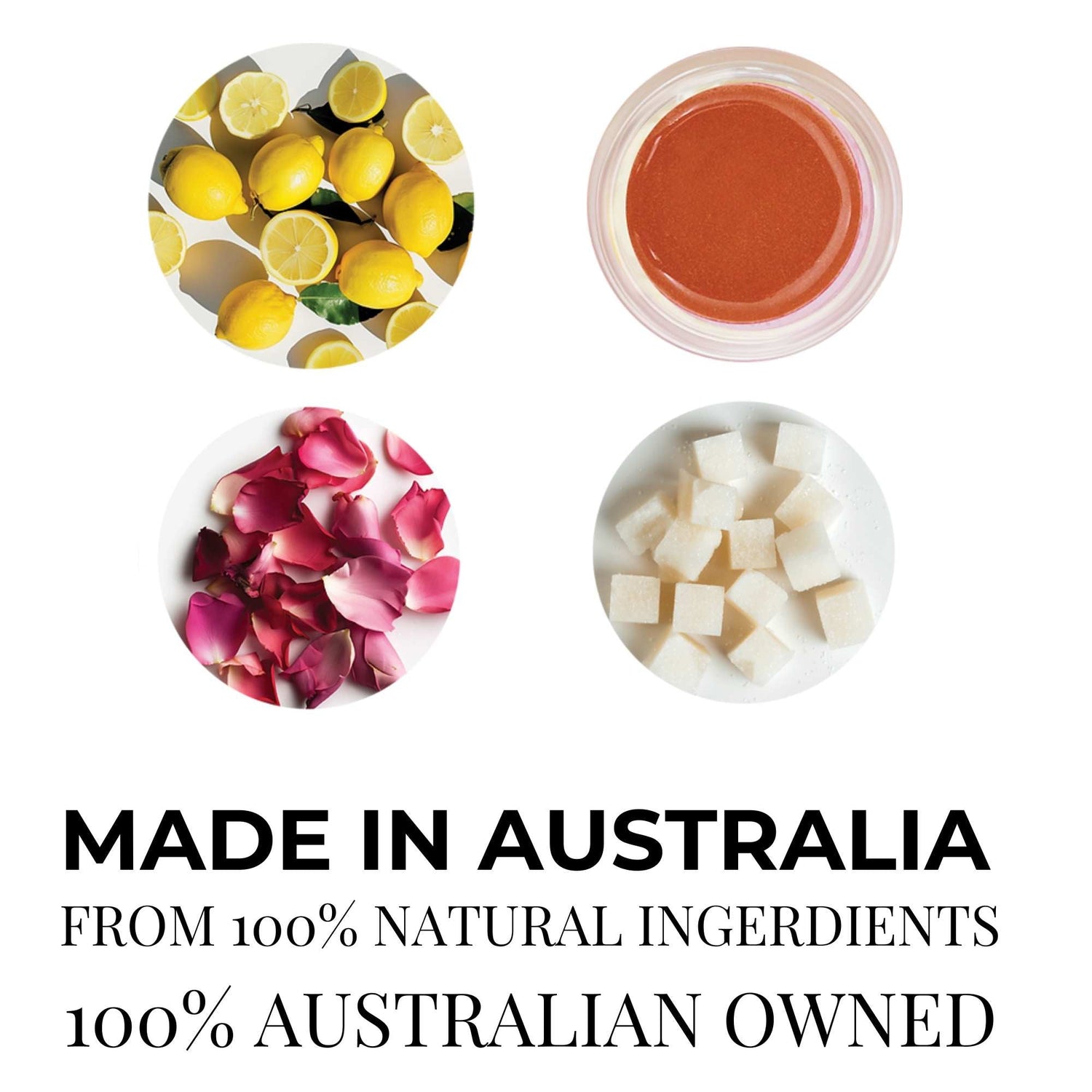 Sugar, Water, Lemon, 100% Pure Rose Oil