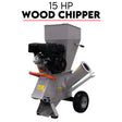 This Kingtech 15HP Wood Chipper/Shredder is a great way to quickly turn yard waste into ground cover for gardens or trees. Dual feed: use the drop-in shredding hopper for brush and leaves and the dedicated chipper chute for sticks and branches. 420cc engine displacement with pull start system