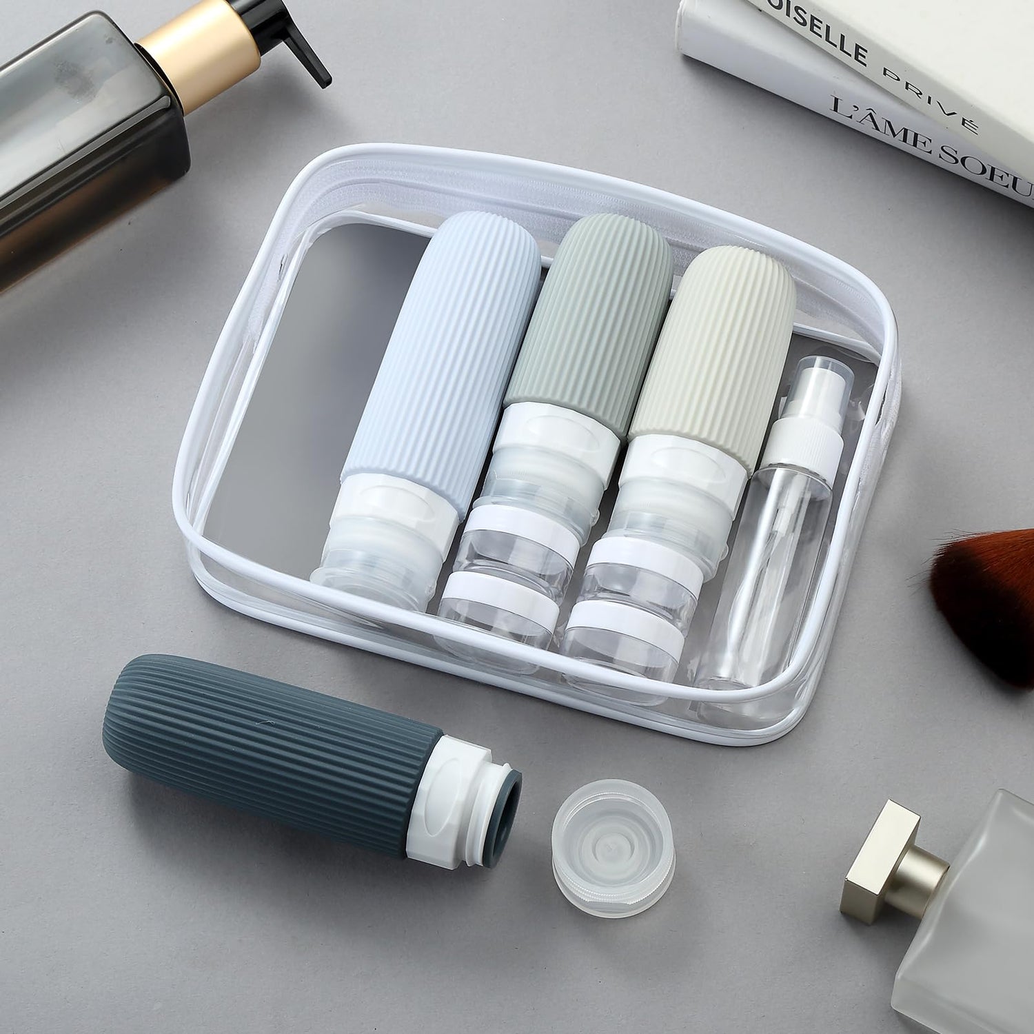 16-Piece Travel Bottle Set with Leak-Proof Silicone Squeeze Bottles – Reusable Toiletry Containers for Shampoo, Lotion, Makeup Remover (Grey) | Other Colors Available in Store