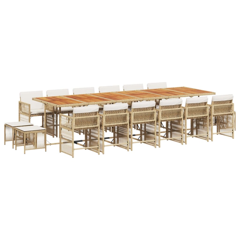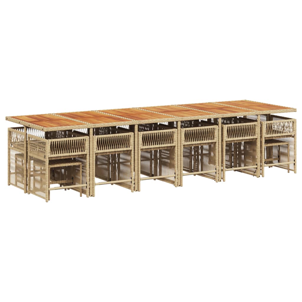 This garden dining set is a great choice for al fresco dining or just relaxing in the garden, backyard, or patio. Durable material: PE rattan, also known as poly rattan, is a strong, low-maintenance synthetic material that looks like natural rattan. It's lightweight, easy to clean, and commonly used for outdoor furniture due to its durability and weather-resistant properties.Compact storage: These chairs have a flap backrest that can be folded down, making it easy to store them under the table. When folded, they neatly fit under the table, forming a space-saving cube shape.Comfortable seat experience: This outdoor furniture, complete with thickly padded cushions, offers a comfortable seating experience.Removable and washable cover: These seat cushions feature removable covers for easy washing and maintenance. The cushion covers have a flap at the back for easy attachment to the backrests.Stable and easy-to-clean tabletop: This garden table has an acacia wood top that is sturdy, durable, and easy to clean with a damp cloth. Good to know:To make sure your outdoor furniture stays beautiful, we recommend protecting it with a waterproof cover.