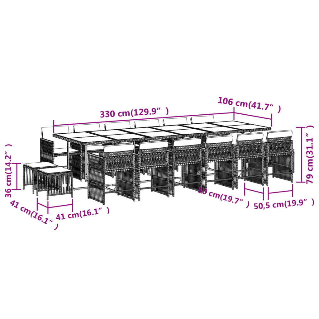 - Dimensions: 330 x 106 x 73 cm (L x W x H)