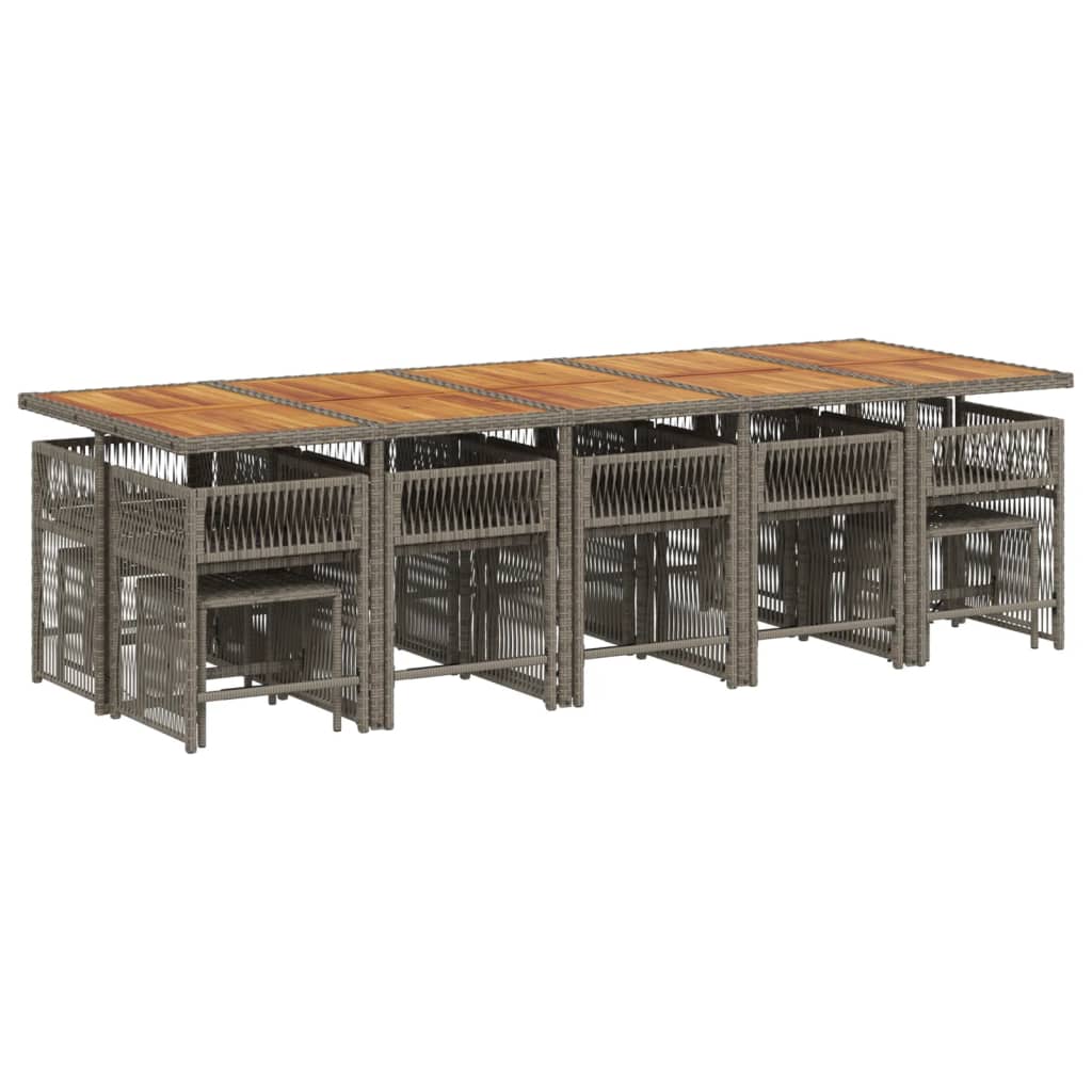 This garden dining set is a great choice for al fresco dining or just relaxing in the garden, backyard, or patio. Durable material: PE rattan, also known as poly rattan, is a strong, low-maintenance synthetic material that looks like natural rattan. It's lightweight, easy to clean, and commonly used for outdoor furniture due to its durability and weather-resistant properties.Compact storage: These chairs have a flap backrest that can be folded down, making it easy to store them under the table. When folded, they neatly fit under the table, forming a space-saving cube shape.Comfortable seat experience: This outdoor furniture, complete with thickly padded cushions, offers a comfortable seating experience.Removable and washable cover: These seat cushions feature removable covers for easy washing and maintenance. The cushion covers have a flap at the back for easy attachment to the backrests.Stable and easy-to-clean tabletop: This garden table has an acacia wood top that is sturdy, durable, and easy to clean with a damp cloth. Good to know:To make sure your outdoor furniture stays beautiful, we recommend protecting it with a waterproof cover.