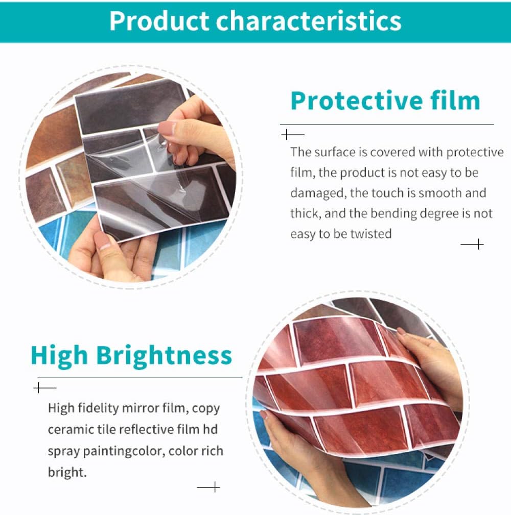 Transform your living space from ordinary to extraordinary with these unique stick on tiles for backsplash! Easy to install, just peel and stick (not real tile ) Features: 1. PVC Material 2.Removable wall sticker 3.Waterproof and moisture-proof 4.Easy to install and clean 5.It is not real ceramic tile 6.Easy cut and trim 7.DIY Backsplash sticker 8.Peel and Stick 9.Light weight and heat shield 10.Heavy-metal free, formaldehyde free PACKAGE INCLUDED: 18 x wall tiles stickers( You received 3 sets of tile stickers, 6 pieces/set, weight: 430 g ) NOTE: It only suitable for smooth place like ceramic tile,glass,metal and other smooth surface. Tip to remove: If you want to remove the tile, you could use a hairdryer to warm up the adhesive and pull softly, starting with the corners. Then use a cleaning product to remove the excess glue left by the peel and stick tiles
