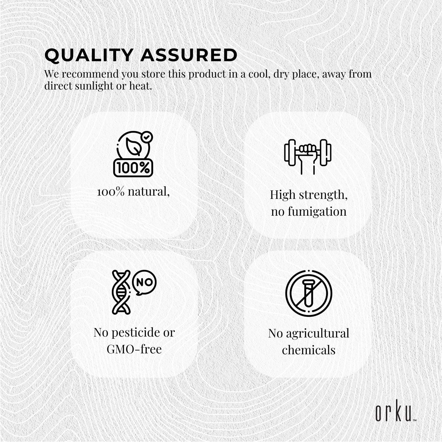 Our Orku one-time cold-pressed pure Ethiopian Black Seed Oil, is 100% natural, containing one of the highest levels of Thymoquinone (TQ). Slightly filtered, our black seed oil is non-refined, with no additives or preservatives, no agricultural chemicals or pesticides and is GMO free.