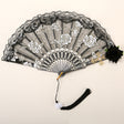 2 Pack Black Lace Black Rose Cross Vintage Lace Folding Fans Gothic Palace Style with Rose Cross Tassels for Tea Party Cosplay and Photo Props