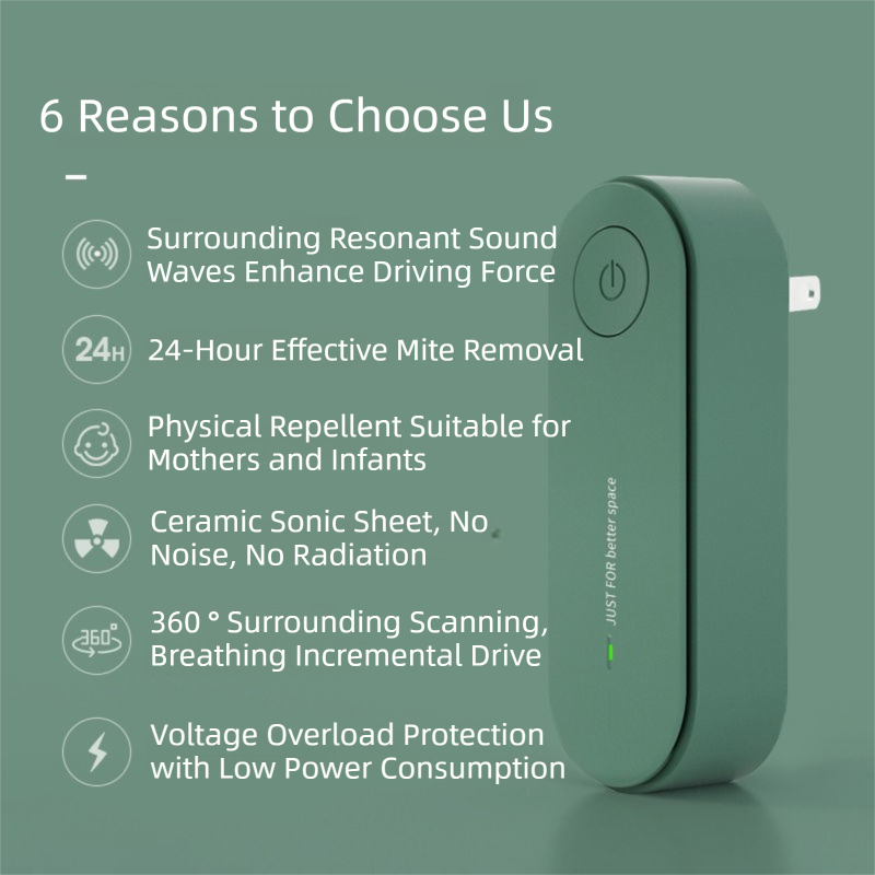 - Advanced Ultrasonic Technology: Emits powerful yet silent ultrasonic waves that interfere with the nervous and reproductive systems of mites, effectively reducing their presence over time.
