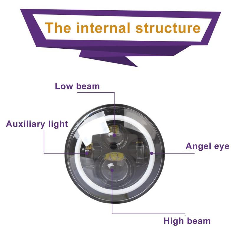 • 1 x 2 Pcs 7 Inch Ip68 Waterproof 6500K 75W Cree Led Headlight Hi / Lo Beam Driving Lamp For Jeep Wrangler Jk Tj Lj