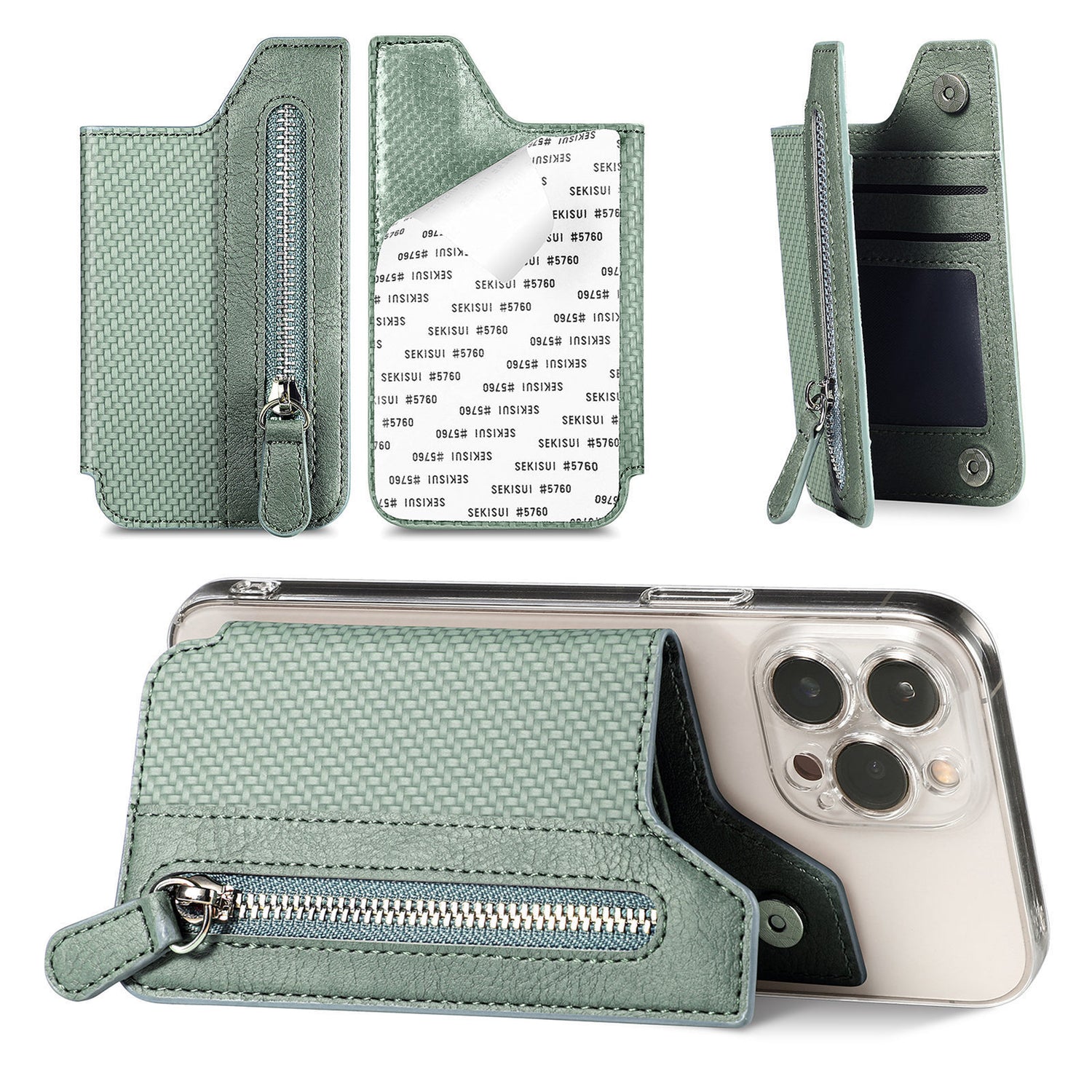 2 Pcs Green Multifunction Stick-On Phone Wallet - PU Leather Card Holder with Zipper & Flip Cover