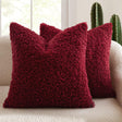 2 Pcs Red Cozy Teddy Boucle Cushion Cover - Plush Decorative Square Pillow Case for Sofa & Bed