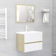 With this stylish bathroom furniture set, you can create additional storage space for your bathroom with a striking, tidy appearance. The clean lines and sleek design blend into your bathroom perfectly. The furniture set, featuring a mirror and a cabinet, is made of durable and stable engineered wood. This chic cabinet features 1 drawer, offering ample storage space to store items in your bathroom. The top of the cabinet is ideal for placing the sink. The mirror also adds an excellent appearance to your home decor. Additionally, this bathroom set is easy to clean with a damp cloth. Please note: The sink is not included in the delivery.