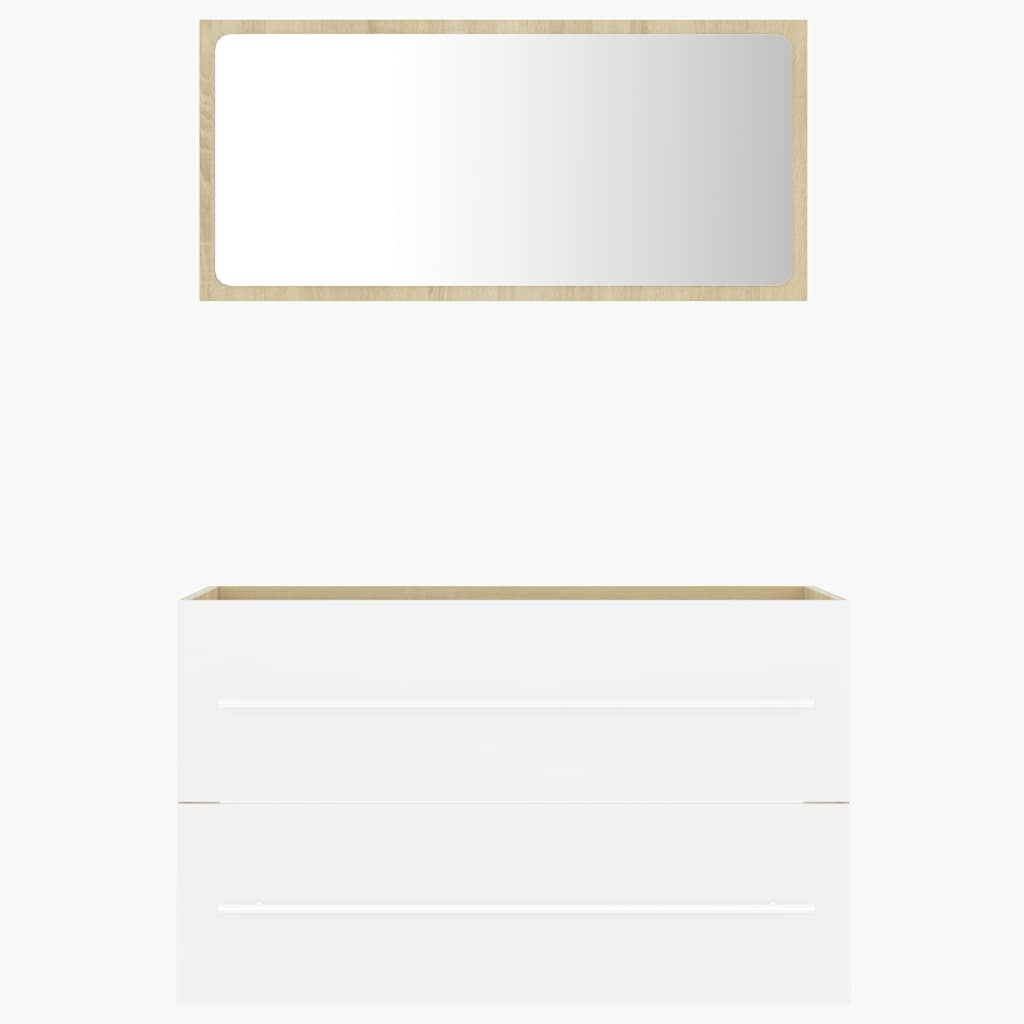With this stylish bathroom furniture set, you can create additional storage space for your bathroom with a striking, tidy appearance. The clean lines and sleek design blend into your bathroom perfectly. The furniture set, featuring a mirror and a cabinet, is made of durable and stable engineered wood. This chic cabinet features 1 drawer, offering ample storage space to store items in your bathroom. The top of the cabinet is ideal for placing the sink. The mirror also adds an excellent appearance to your home decor. Additionally, this bathroom set is easy to clean with a damp cloth. Please note: The sink is not included in the delivery; the top handle of the cabinet is only for hanging a towel and not the handle for a drawer.