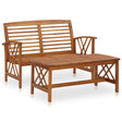 The wooden garden lounge set, consisting of 1 bench and 1 coffee table, adds a vintage look and is specially designed for your garden, patio or other outdoor living space! The outdoor furniture set is built from a solid acacia wood construction with an oil finish, making it stable and durable. Thanks to the solid wood tabletop with slatted design, the coffee table offers you space to put your snacks, fruit baskets, decorative items, as well as other essentials. The backrest and the armrests add the bench's seating comfort. Additionally, both table and bench has double cross on sides. Important note: Colours and grains vary from piece to piece, making each piece unique. The delivery is random, ensuring the exclusivity and individuality of your product.