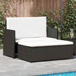 This rattan sofa set combines style and functionality, and will become the focal point of your garden or patio. The whole furniture set is designed to be used outdoors year-round. Thanks to the weather-resistant and waterproof PE rattan, the lounge set is easy to clean, hard-wearing and suitable for daily use. The seat set features a sturdy powder-coated steel frame, which is highly durable. It is also lightweight and modular, which makes it flexible and easy to move around to suit any setting. This multifunctional set can be used as a 2-seater sofa, 2-person sofa bed, or 2-seater sofa with a stool to suit any need. The backrest can be folded down to easily convert the sofa to a bed. What's more, the stool can be stored under the sofa to save space while not in use. This set is delivered with highly comfortable, thickly padded seat and back cushions. The cushion covers are removable and washable. Delivery includes a 2-seater sofa, a stool and three cushions. Note: We recommend covering the set during rain, snow and frost.