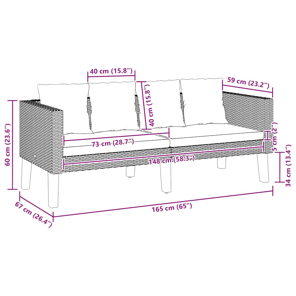 Create an eye-catching and relaxing lounge area that you have always dreamed of with this 2-seater sofa. You can enjoy a relaxing, sunny afternoon or summer evening with your friend on this garden sofa! This outdoor sofa is made of durable PE rattan with a powder-coated steel frame, making it strong, sturdy and weather resistant. The sofa is easy to clean, hard-wearing and suitable for daily use with the all-weather PE rattan. The thickly padded cushions and extra deep modern seating slip you into deep relaxation. Additionally, you can move this garden sofa around your house with great ease with its lightweight and modular design. Note: We recommend covering the sofa in the rain, snow and frost.