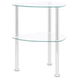 This stylish 2-tier side table adds a modern look and enhances your existing decor in your living space. The accent table is made of tempered glass with a rough grinding finish and stainless steel tube, making it stable and durable. The sturdy tabletop can be used to hold your drinks or any other items. There is also additional space between the tabletop and the shelf for keeping your essentials. It also serves as an end table, telephone stand and sofa table etc.