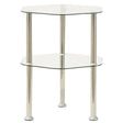This stylish 2-tier side table adds a modern look and enhances your existing decor in your living space. The accent table is made of tempered glass with a rough grinding finish and stainless steel tube, making it stable and durable. The sturdy tabletop can be used to hold your drinks or any other items. There is also additional space between the tabletop and the shelf for keeping your essentials. It also serves as an end table, telephone stand and sofa table etc.